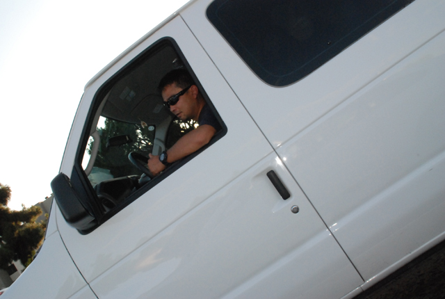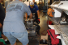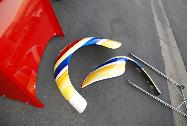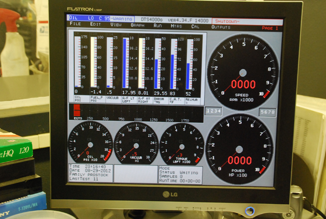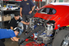 スタッフ一同、8月29日(水)PM7:30に成田を出発し、ロサンゼルス空港に29日のPM2:00に到着しました。 そこから、15人乗りのレンタカーを2台借り、まずは「FUJIAUTO」に向かい、挨拶を終えると、旅の疲れなどを癒している時間もなく、すぐに「FLASH BUG 3」の待つ、ロジャー・クロフォードのショップ「HeadsUp」へ直行しました。 この時点でのクルーは、現地で合流したのを合わせ、15人でした。 Dynoテストをお願いしていた、「HeadsUp」 に到着したのが午後7時くらい。早速エンジンをレースカーから降ろし、Dynoへ載せてエンジン始動! この日はこれで終了〜 へとへとでMotelへ戻りました。